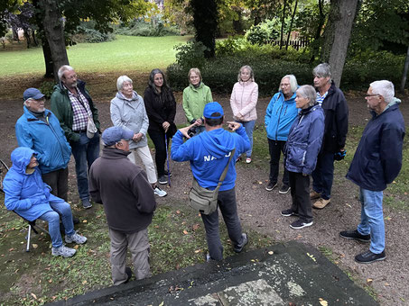 Unser Naturschutzwart Reinhard Simon ist auch Experte für Fledermäuse und hat sich bereit erklärt, eine Führung durch den Stadtpark von Heiligenhafen durchzuführen. Die überaus interessierten Gäste erhielten von dem NABU-Fachmann eine Fülle interessanter Informationen über die Lebensweise der Fledermäuse.